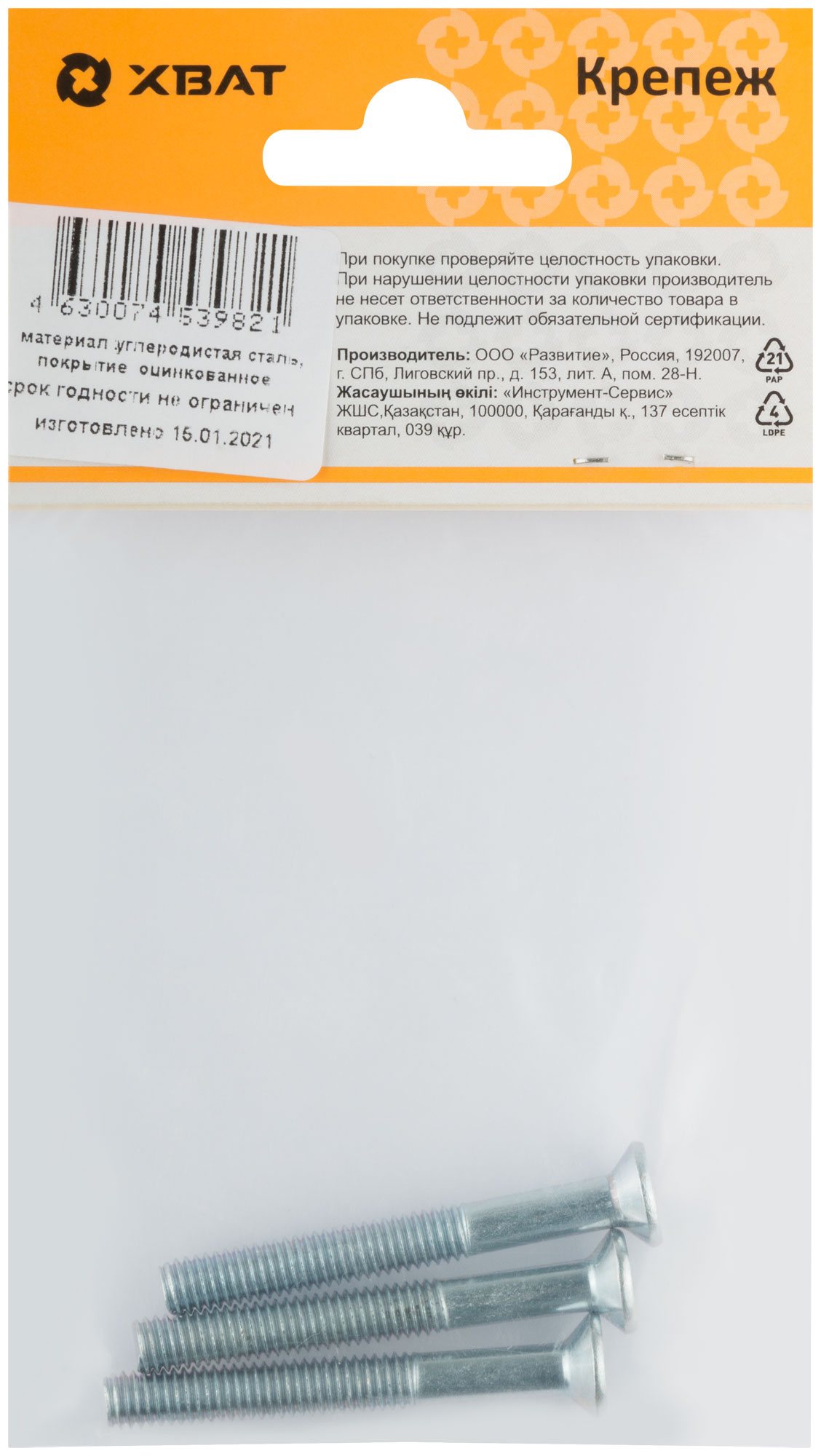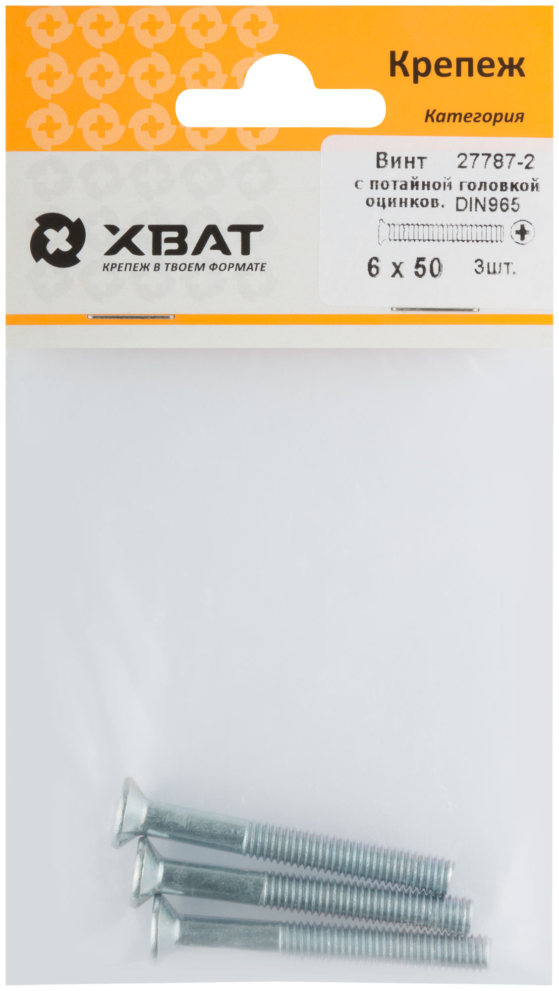 Купить Винт с потайной головкой с полной резьбой оцинкованный DIN 965 6 х 50 3 10 (фасовка) по доступной цене в Москве