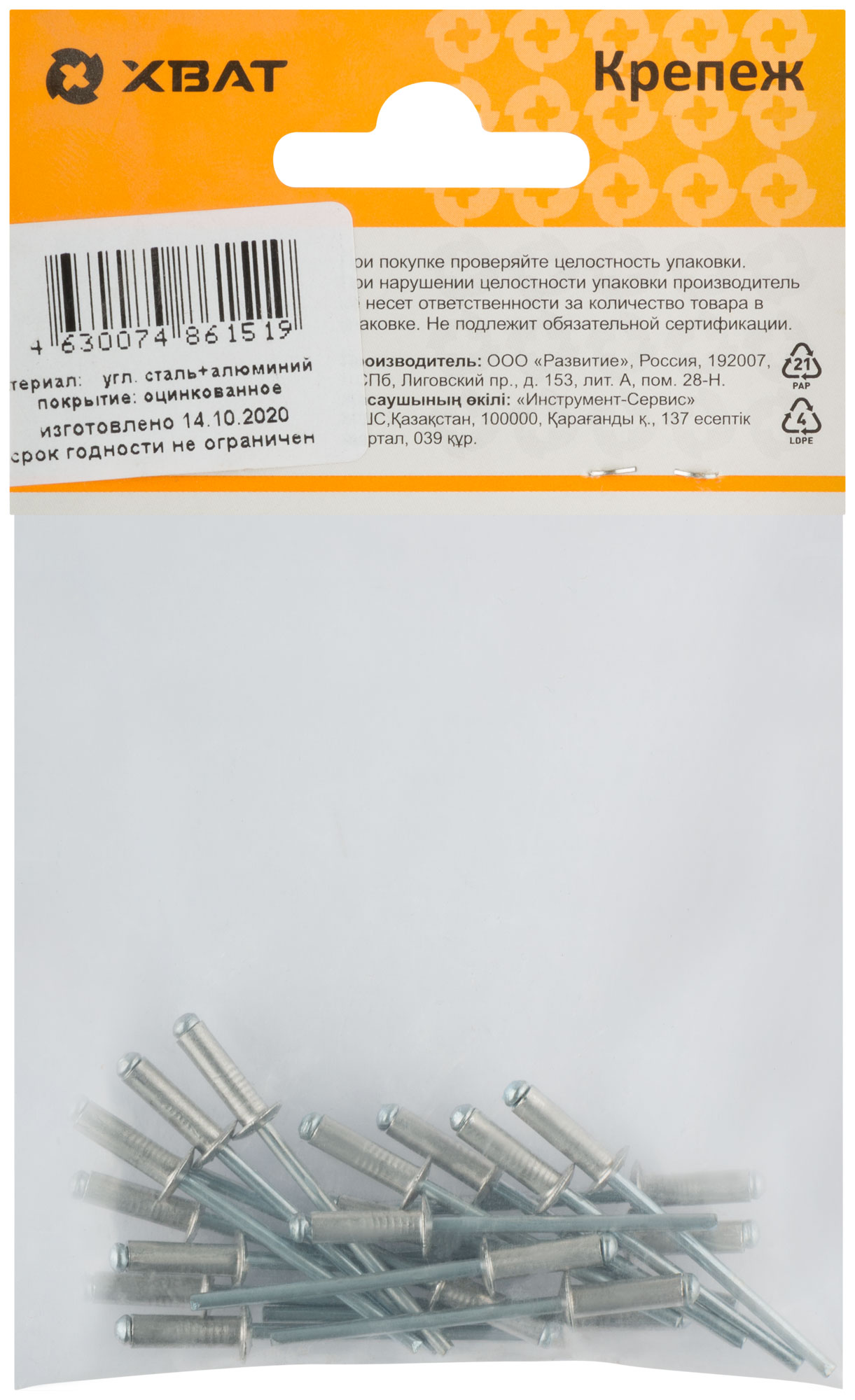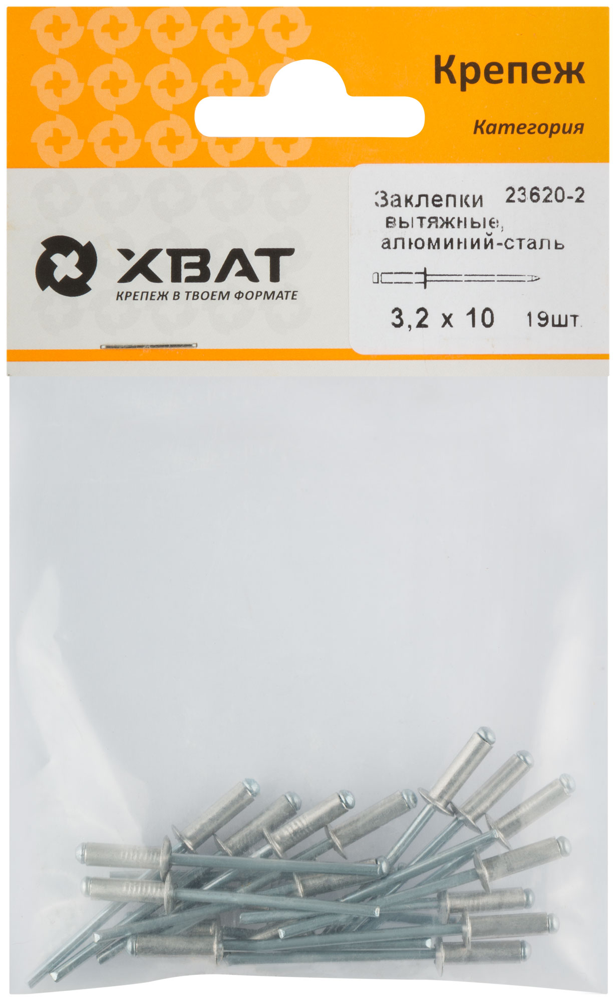 Купить Заклепки вытяжные комбинированные, алюминий-сталь 3,2 х 10 (фасовка 19 10.) по доступной цене в Москве