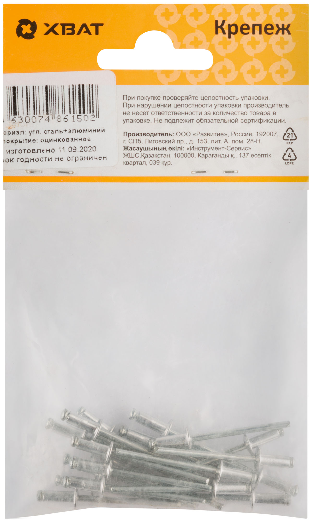 Купить Заклепки вытяжные комбинированные, алюминий-сталь 3,2 х 8 (фасовка 20 10.) по доступной цене в Москве