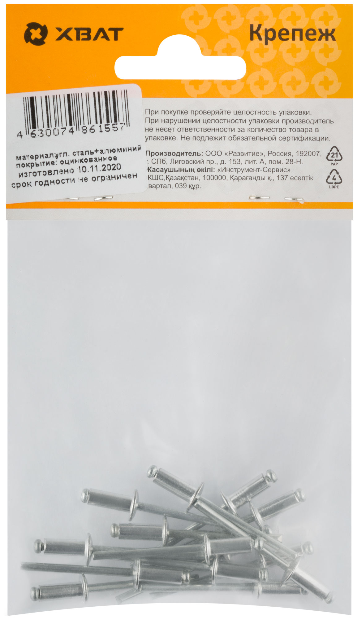 Купить Заклепки вытяжные комбинированные, алюминий-сталь 4,0 х 10 (фасовка 14 10.) по доступной цене в Москве