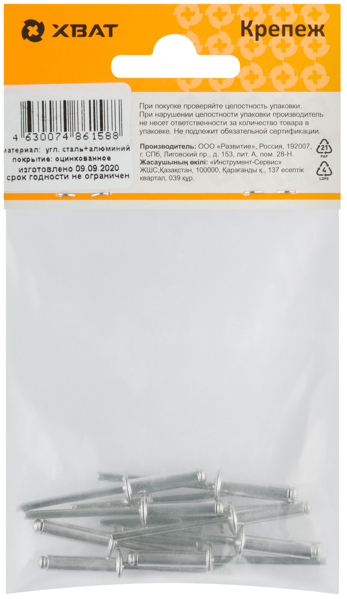 Купить Заклепки вытяжные комбинированные, алюминий-сталь 4,0 х 16 (фасовка 11 10.) по доступной цене в Москве