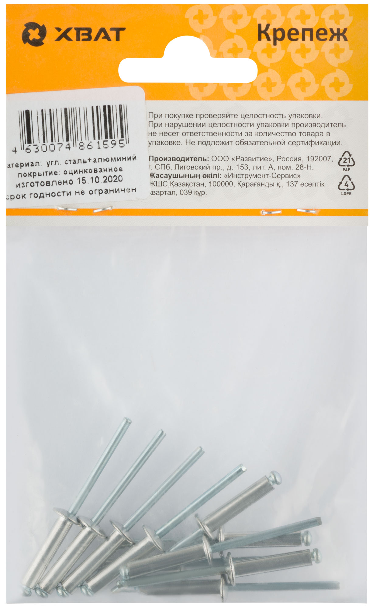 Купить Заклепки вытяжные комбинированные, алюминий-сталь 4,0 х 18 (фасовка 10 10.) по доступной цене в Москве