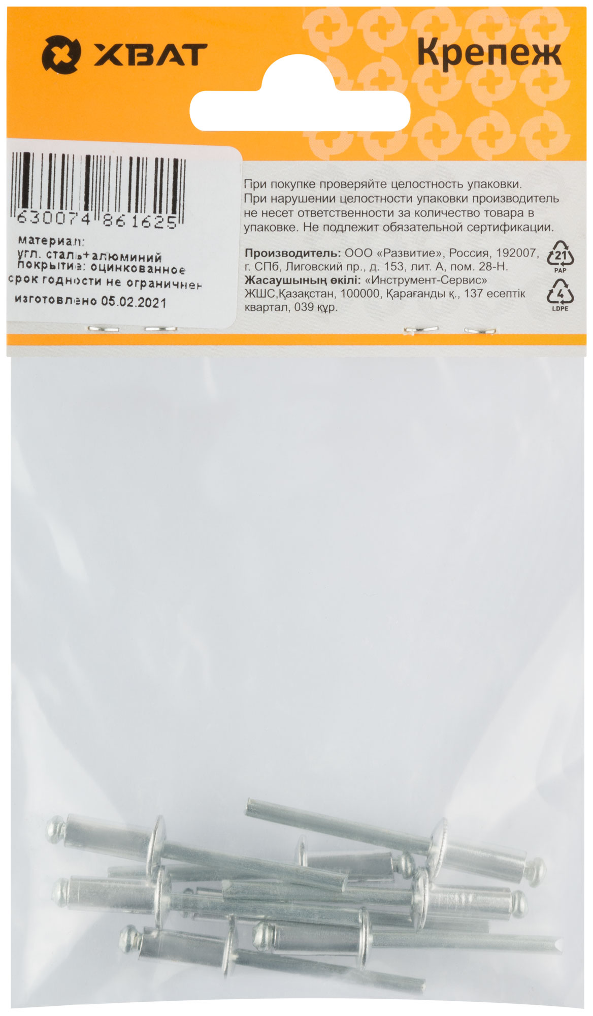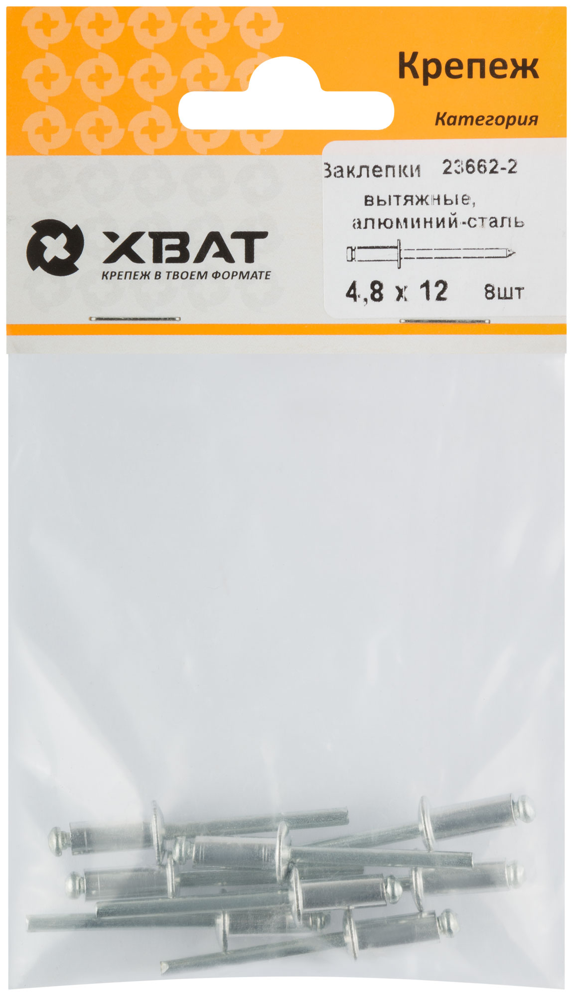 Купить Заклепки вытяжные комбинированные, алюминий-сталь 4,8 х 12 (фасовка 8 10.) по доступной цене в Москве