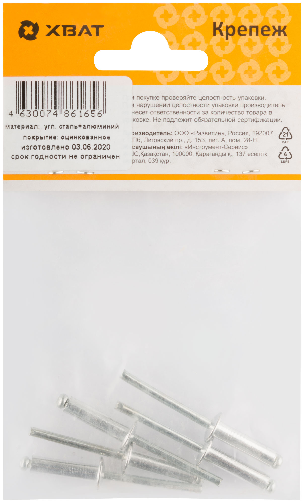 Купить Заклепки вытяжные комбинированные, алюминий-сталь 4,8 х 18 (фасовка 5 10.) по доступной цене в Москве